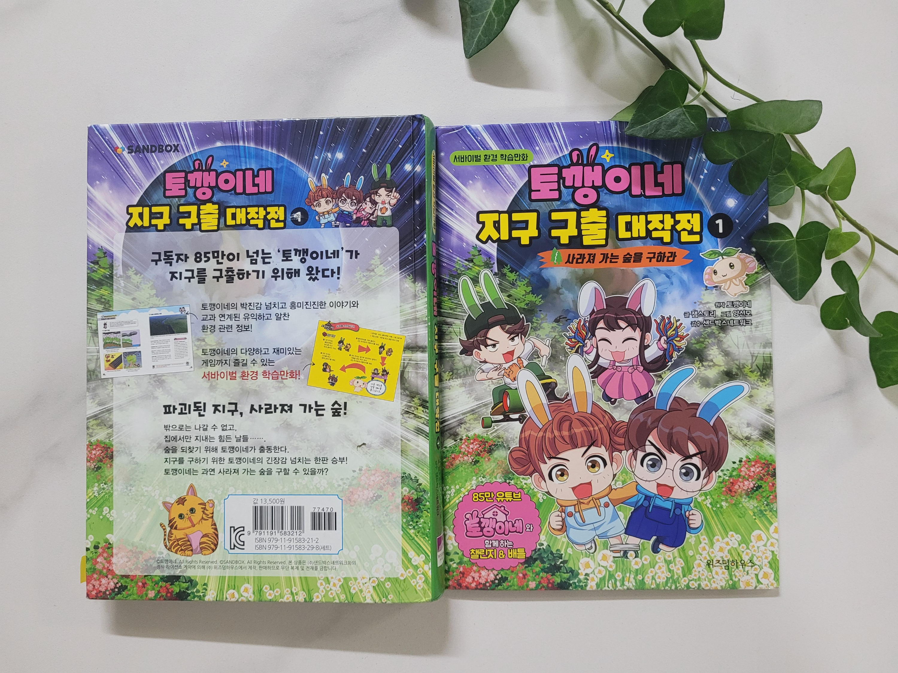 환경이라는 소재를 쉽게 읽기 위해 알아보다가 유튜브에 나오는 토끼네 가족들이 만든 환경책을 만나게 되었어요. 유명한 유튜버이기에 부담감 없이 구매해서 읽었습니다. 보자마자 순식간에 싹 다 읽어버렸어요. 1탄에는 사라져 가는 숲을 구하라라는 이야기를 담고 있습니다.